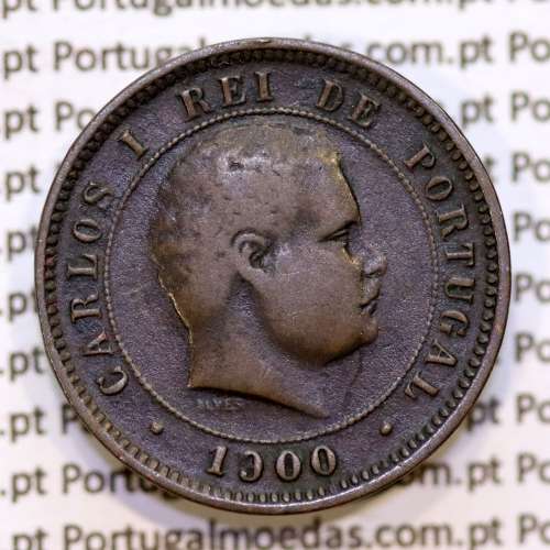 Portugal, 5 Reis 1900 bronze coin of King Carlos I, (VF+), World Coins Portugal KM 530