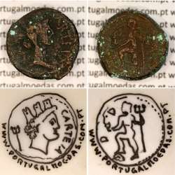 Moeda Semisse Bronze de Carteia - Hispania, atribuída á época de Augusto, (27 a.C. a 14 d.C.) “CAIVS IVLIVS CAESAR OCTAVIVS AVGUSTVS”, Legenda: CARTEIA / D.D