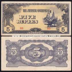 five rupees note from the Japanese occupation of Burma (1942), circulated, Pick 15b
