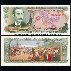 5 Colones banknote from Costa Rica (1990), Pick reference 236, in uncirculated condition.