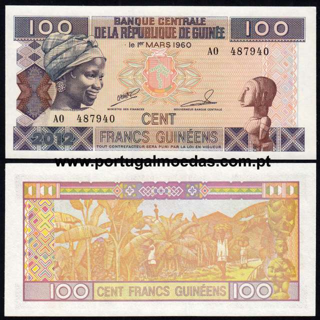 100 Francs banknote issued in Guinea in 2012, catalogued Pick 35b