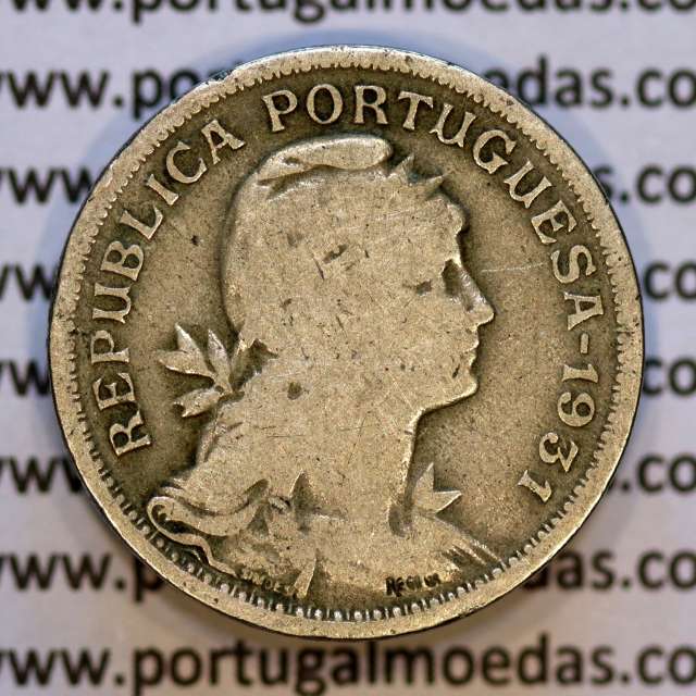 Moeda de 50 Centavos 1931 em Alpaca, $50 centavos 1931 Republica Portuguesa, World Coins Portugal KM#577