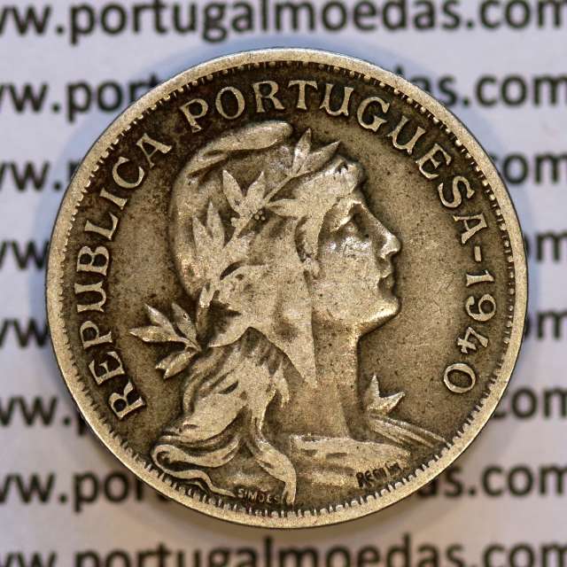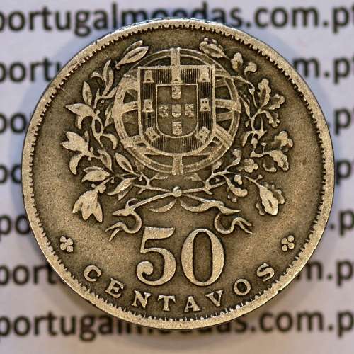 Moeda de 50 Centavos 1940 em Alpaca, $50 centavos Republica Portuguesa, World Coins Portugal KM#577