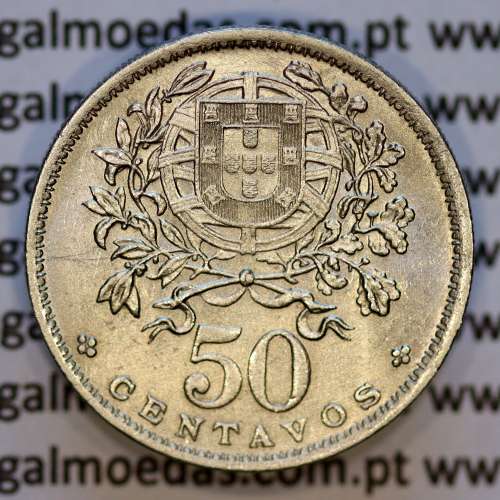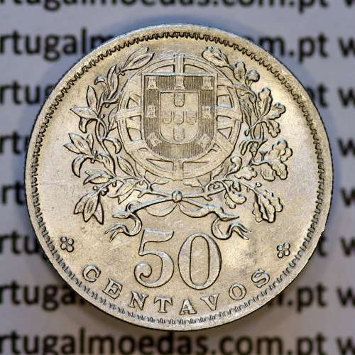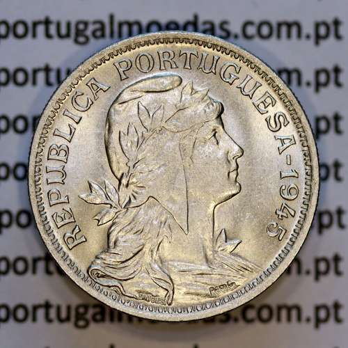 Moeda de 50 Centavos 1945 em Alpaca, $50 centavos 1945 Republica Portuguesa, World Coins Portugal KM#577