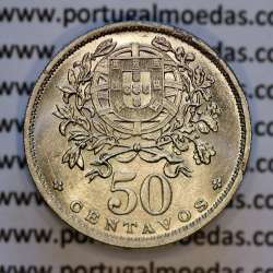 Moeda de 50 Centavos 1951 em Alpaca, $50 centavos 1951 Republica Portuguesa, World Coins Portugal KM#577