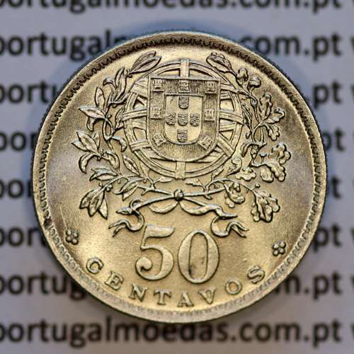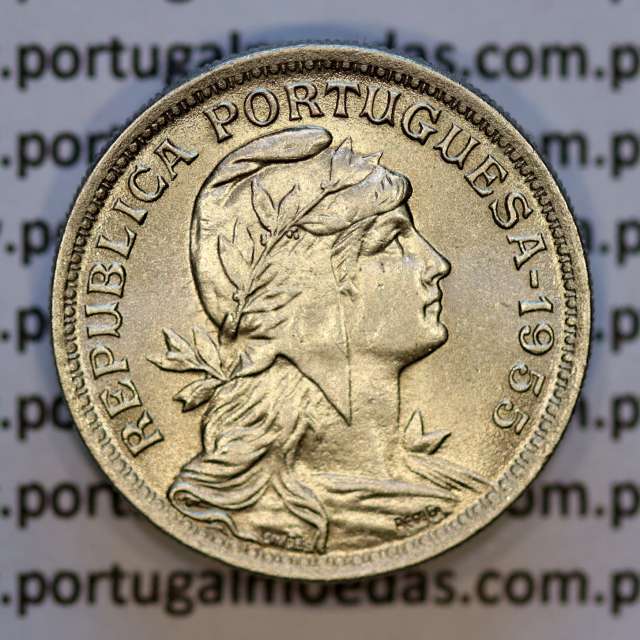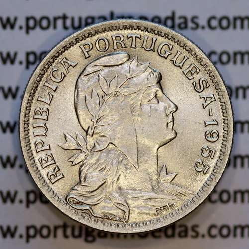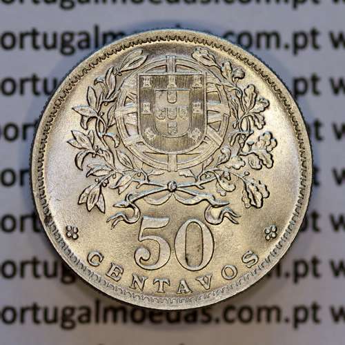 Moeda de 50 Centavos 1955 em Alpaca, $50 centavos 1955 Republica Portuguesa, World Coins Portugal KM#577
