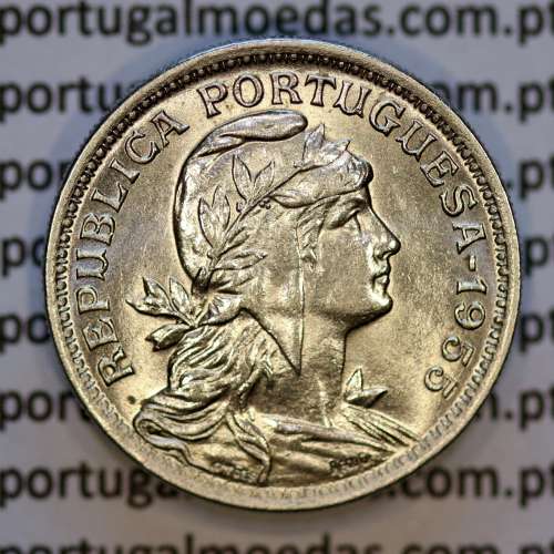 Portugal, coin of 50 Centavos 1959 Alpaca of the Portuguese Republic, or $50 Centavos 1959, belongs to the third series of 50 centavos coins of the Portuguese Republic, coins were minted in the Alpaca alloy (Cu 610 - Zn 200 - Ni 190) with dates from 1927 to 1968, created by Decree 13797 of June 21, 1927, their issuance ceased under the terms of Decree-Law 49167 of August 4, 1969, they were withdrawn from circulation under the terms of Decree-Law 267/81 of September 15, 1981. Total issue in the various dates minted between 1927 and 1968 was 130,000,000.