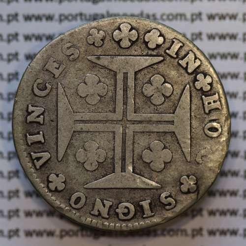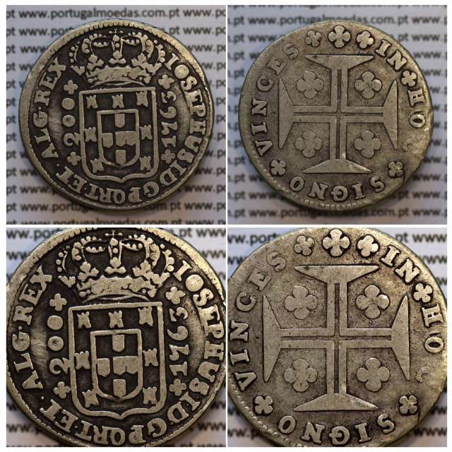 Moeda 12 Vinténs Prata 1763 D. José I (1750 -1777), 240 réis IOSEPHUS Coroa alta de 5 Arcos, diadema losango um ponto, Reverso letras pequenas 2 mm, (Anverso AG.29.01 Reverso com florões e legenda letra pequena), World Coins Portugal KM#247.2