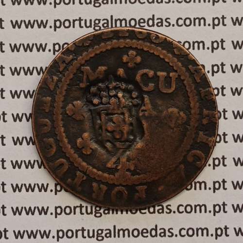 MOEDA 1/4 MACUTA COBRE 1763 C/ CARIMBO ESCUDETE - ANGOLA - D.MARIA II