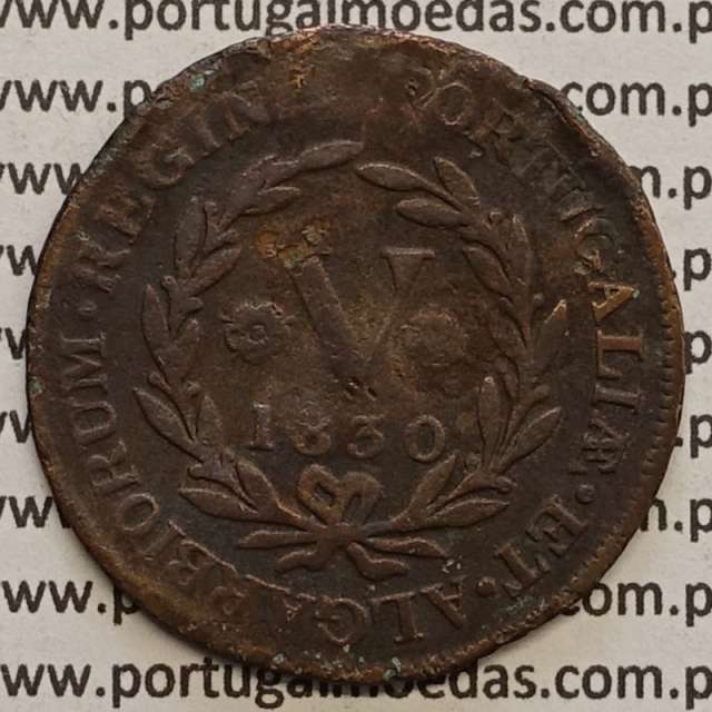 Moeda V reis em cobre 1830 cunhagem de Londres para continente e ilhas dos Açores por Alvará da Regência de 28 de Fevereiro de 1831