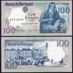 Portugal, banknote 100 Escudos 1981 Bocage Plate 8 - Bank of Portugal Lisboa 24 February 1981, one hundred Escudos (100$00) 24.02.1981, serial number: BFF 69699, signatures O Governador: Manuel Jacinto Nunes - O Administrador: Joaquim Cavaqueiro Mestre, World Paper Money Portugal Pick#178.b