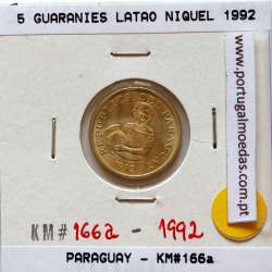 Paraguai, 5 Guaranies 1992 Latão Níquel, World Coins Paraguay KM#166a
