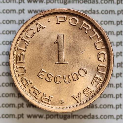 Ao centro em duas linhas o valor facial "1 ESCUDO", no rebordo arco circulo liso seguido de ornamentos arqueados, e em seu redor separada por um florão "✤" a legenda: REPÚBLICA • PORTUGUESA ✤