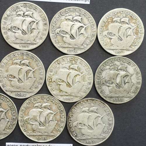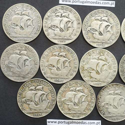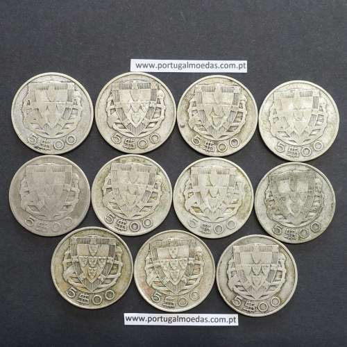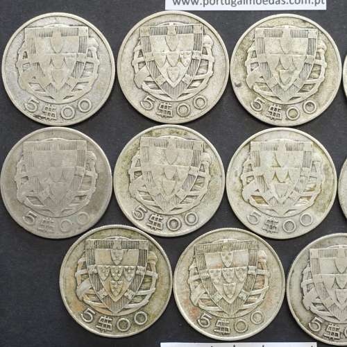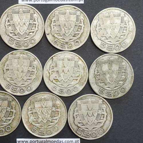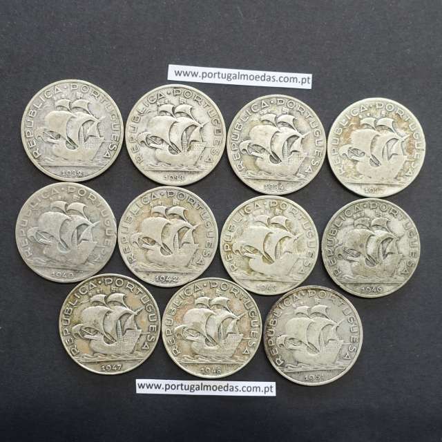 COLEÇÃO COMPLETA DE MOEDAS 5$00 ESCUDOS "CINCO ESCUDOS" PRATA DE 1932 A 1951 - LOTE 11 MOEDAS