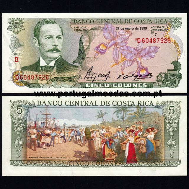 Nota de 5 Colones emitida na Costa Rica em 1990, catalogada com o Pick 236e.