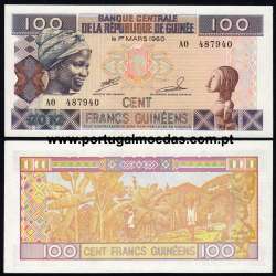 Nota de 100 Francs da Guiné (2012), referência Pick 35b, em estado não circulado.