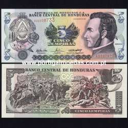 Nota de 5 Lempiras das Honduras 2004, referência Pick 85, em estado não circulado
