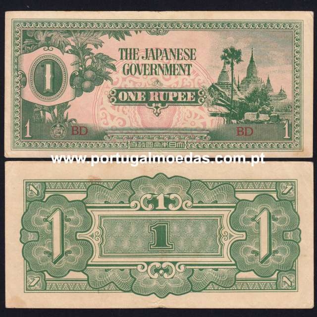 Nota de one rupee da ocupação japonesa em Burma (1942), não circulada, referência Pick 14b